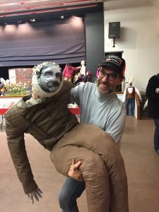 Qu’allons-nous faire de nos avatars ? Les emporter ? Les abandonner ? Que nous racontent-ils ? Comment ont-ils vécu leur naissance ? Et qu’on-t-il pensé de leur journée, en représentation sur l’estrade du salon du livre à voir tout ce monde s’agiter ? Peut-on les jeter à la poubelle ? Est-ce qu’il ne faudrait pas les découper en morceaux ? Le mien et celui de Jean-Olivier, ne pourrait-on pas les marier ? Tiens, le rasta a l’air de paniquer, il a été abandonné dans un coin ! On va le sauver. D’ailleurs, on ramène tout le monde. Désolé pour l’acrobatie et le pliage de jambes, ma voiture est petite car il y a déjà le facteur et son vélo dedans. Ah oui, il a de l’allure près de la porte d’entrée en gardien de la maison tandis que le mien se prélasse dans un fauteuil sous le papyrus et que celui de Jean-Olivier écoute la mélodie du piano.